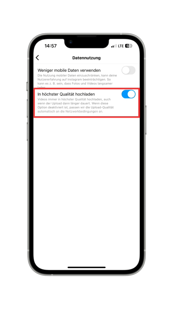 Besonderes Augenmerk legen wir noch einmal speziell auf Instagram: Hier gibt es in den Einstellungen die Möglichkeit, die Qualität von Uploads auf maximal einzustellen.