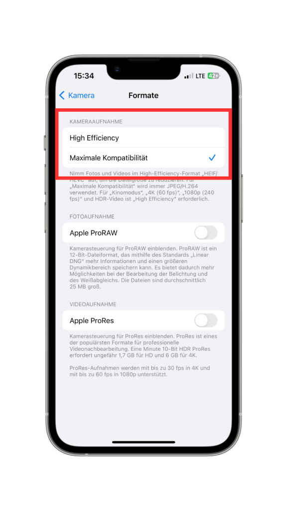 Eine weitere wichtige Einstellung, die Sie im Auge behalten sollten, ist die Einstellung von HEIF (High Efficiency Image Format). HEIF ist ein neues Bildformat, das von Apple entwickelt wurde, um die Bild- und Videokomprimierung auf dem iPhone zu verbessern. Im Vergleich zum traditionellen JPEG-Format bietet HEIF eine höhere Qualität und eine bessere Komprimierung, was bedeutet, dass Ihre Videos weniger Speicherplatz benötigen und schneller auf sozialen Medien hochgeladen werden können.